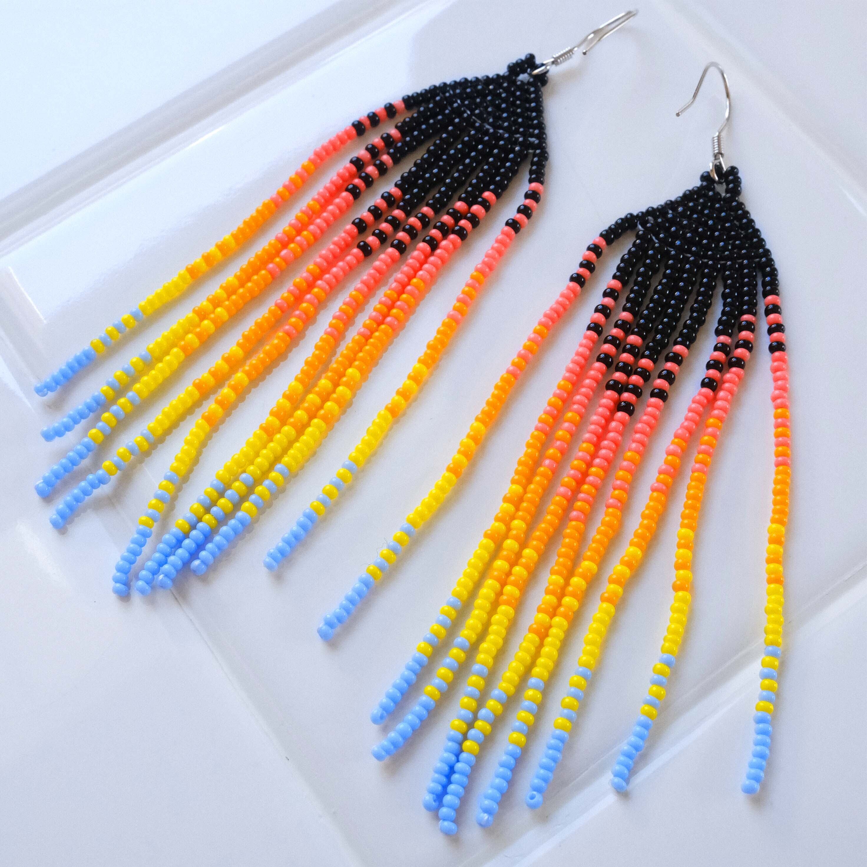 ブラックから始まるピンク&オレンジ&イエロー&ベージュの5色で構成されたグラデーションビーズピアス。