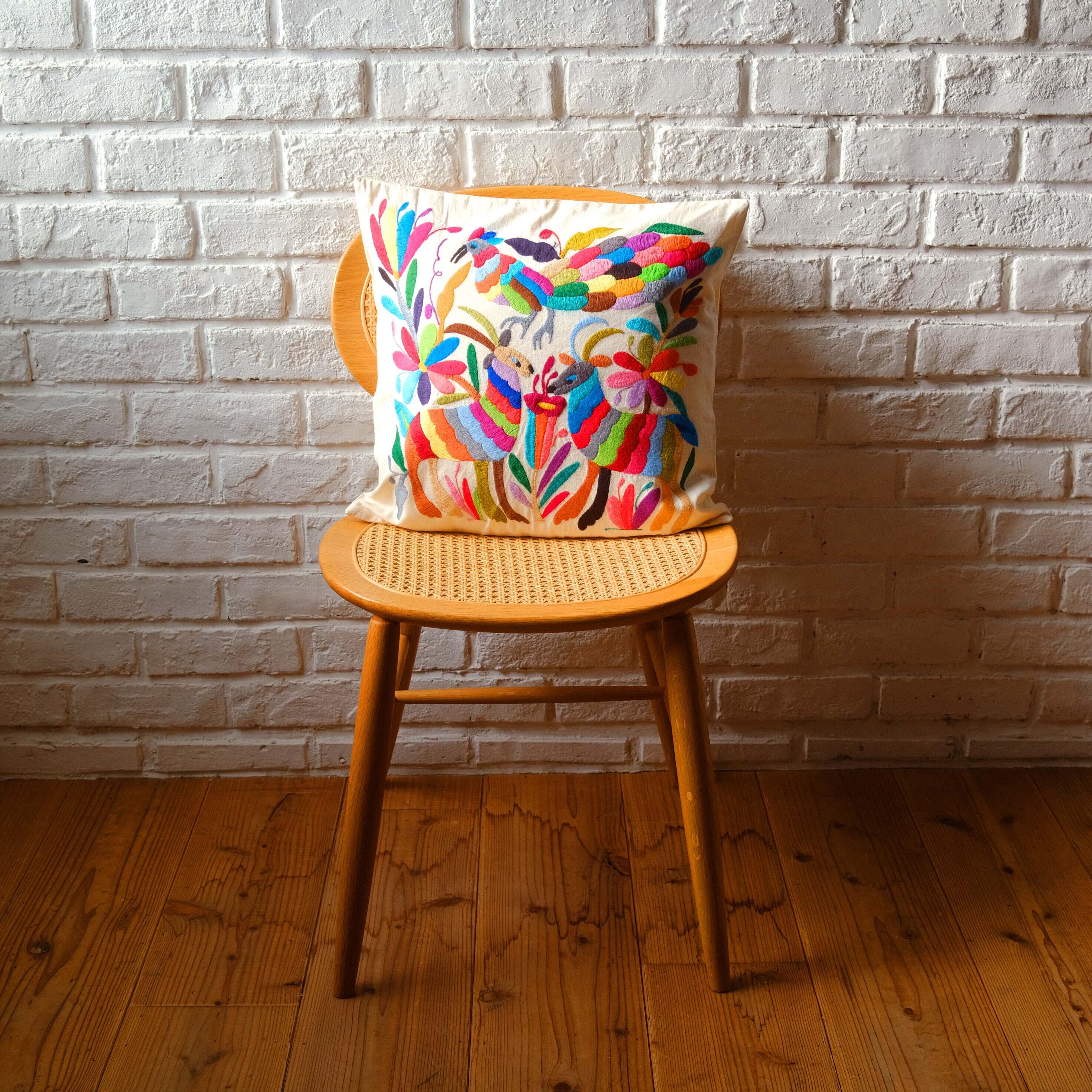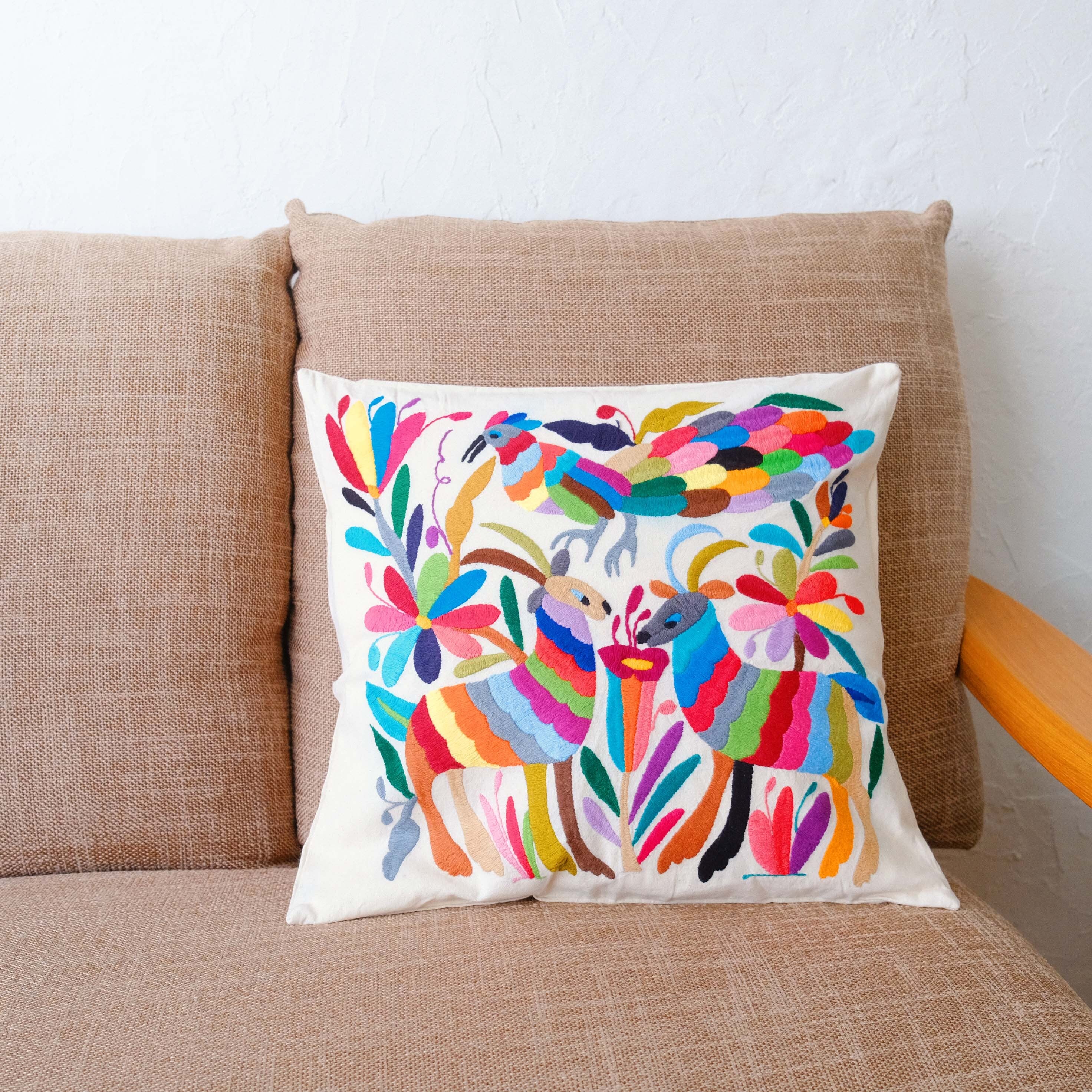 メキシコの先住民「オトミ族」による総手刺繍のクッションカバー。